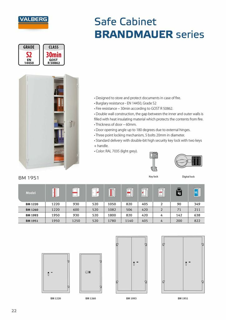 Ofis, Fabrika ve İşyerleri için yüksek güvenlikli ve çift kapaklı Uluslararası yangına dayanıklılık sertifikası olan, yanmaz evrak kasası. İçerisinde 4 adet hareketli raf bulunmaktadır. Bu raflar isteğe bağlı olarak aşağı yukarı hareket edebilir.